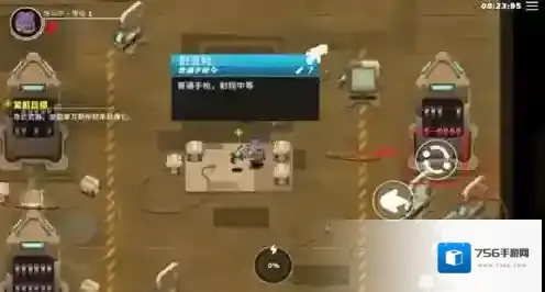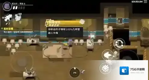 7、拾取武器后,游戏界面右侧的圆盘将发挥作用,点击可以发射子弹攻击敌人,滑动可以调整攻击方向;