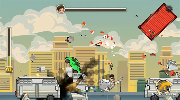 你需要滑动屏幕来控制成都超人击毁像路人袭来的危险物品