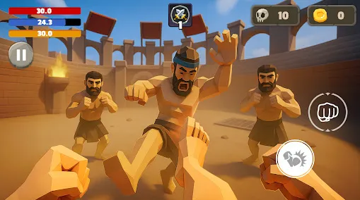 《角斗士模拟器竞技场战争》是一款用拳头讲道理的辩论模拟器。在这里所有矛盾都能用蓄力重击解决,如果不行就再来个回旋踢。小编至今没搞明白的是:为什么竞技场里会有随机刷新的酒瓶?难道是赞助商植入的千年穿越广告?感到兴趣的用户立即下载一起来了解一下吧。角斗士模拟器竞技场战争是一款动作格斗类手游。你将扮演一名角斗士,在残酷的古罗马竞技场中参与无止尽的格斗比赛。角斗士模拟器竞技场战争游戏采用3D画面,由虚幻引擎4技术支持,带来真实的格斗体验。角斗士模拟器竞技场战争每一场战斗都是对反应能力、时机把握和意志力的考验。