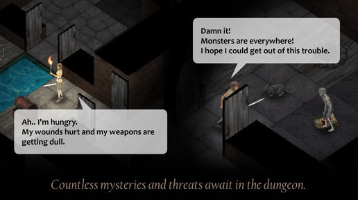 1、迷宫探索求生:操控小姑娘在迷宫地牢中探索,寻找出口的同时应对各类怪物,通过收集资源制作装备,在roguelike机制下体验随机冒险。