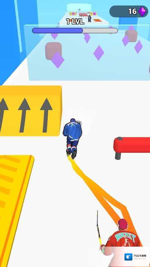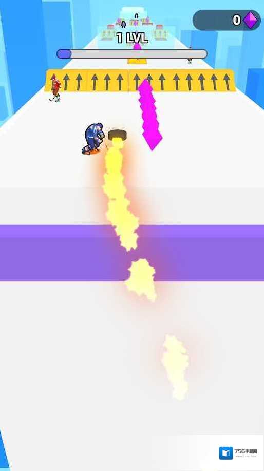 2、闯关时利用赛道上的蓝色加速带提升球速,当冰球进入加速状态后可直接撞碎砖墙类障碍物,同时观察守门员的跳跃预判,通过「假动作变向」绕开防守。